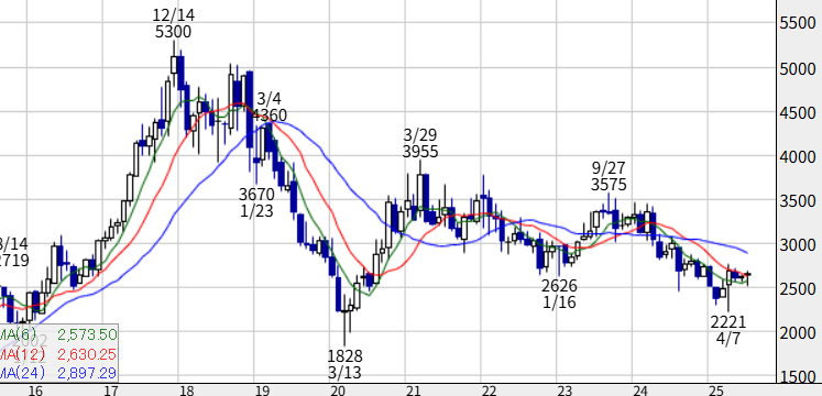 2017年末をピークに調整が続いてる。