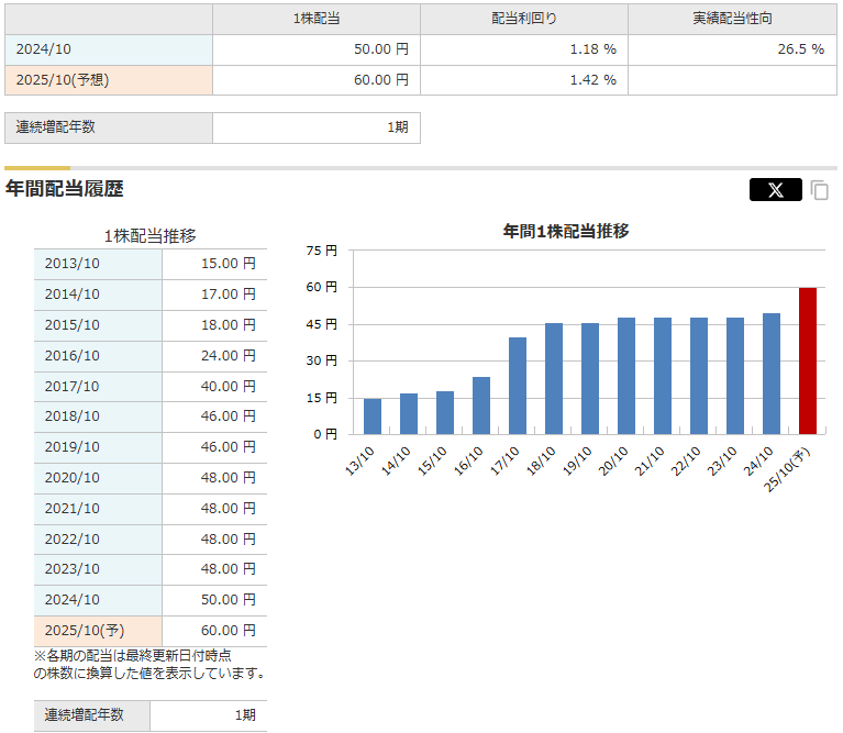 2025年10月から増配