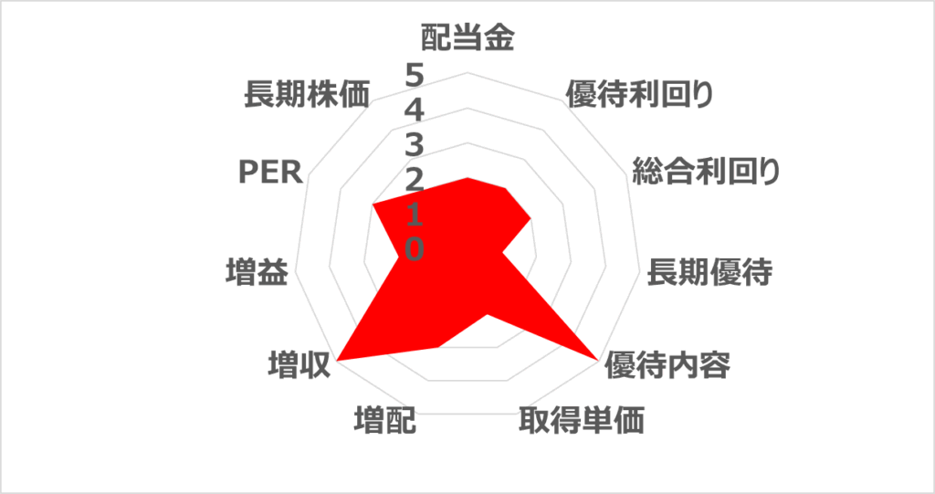 | NISA投資評価 | ★★☆☆☆56pt | 優待の価値 | 6,000円 |