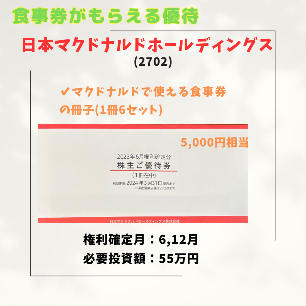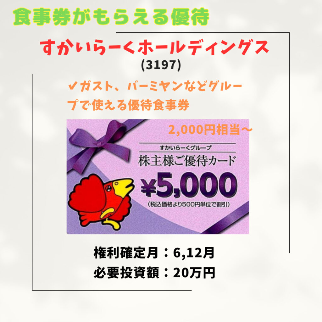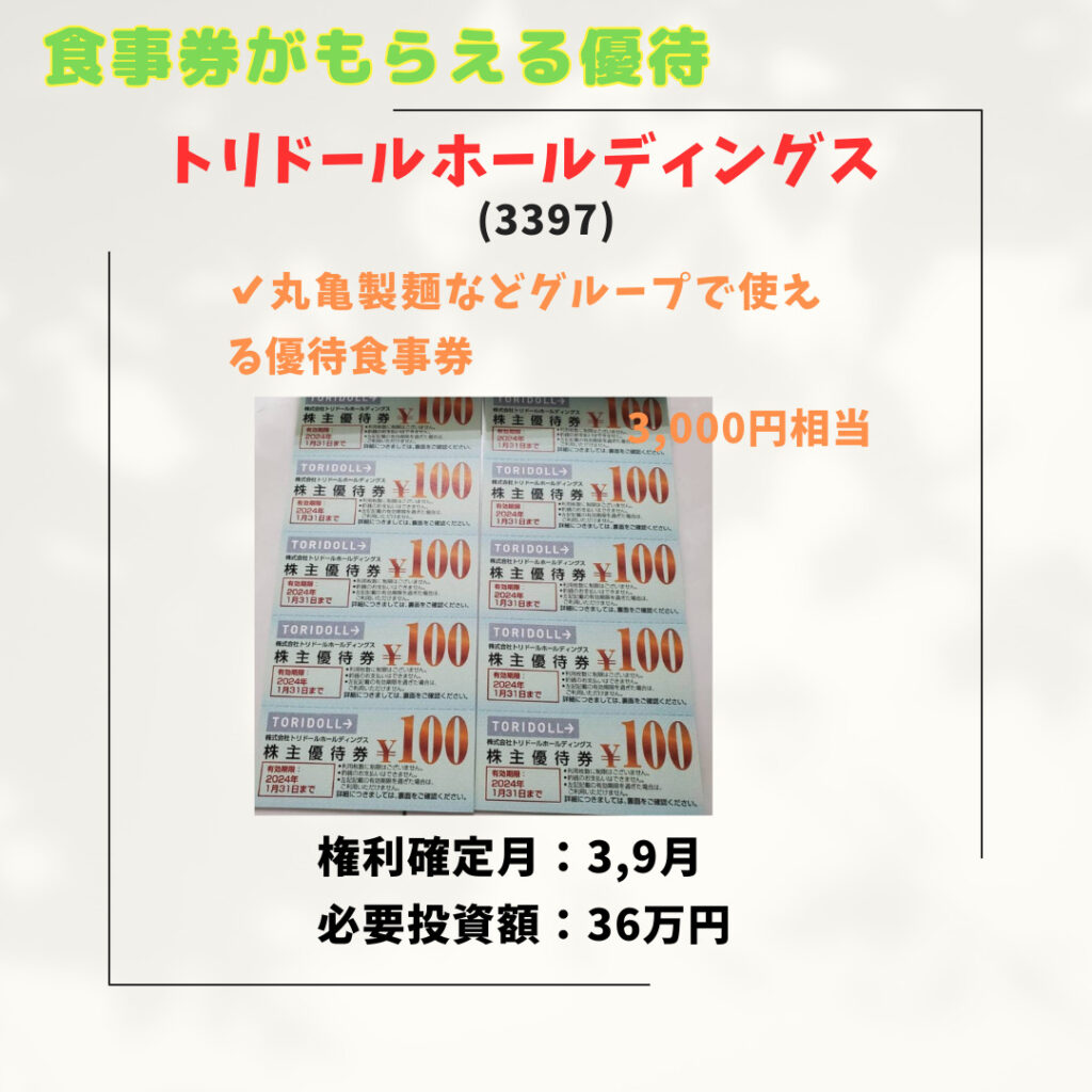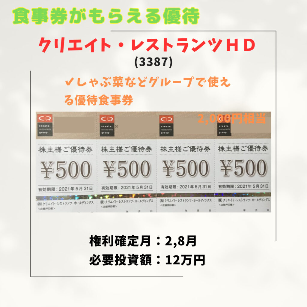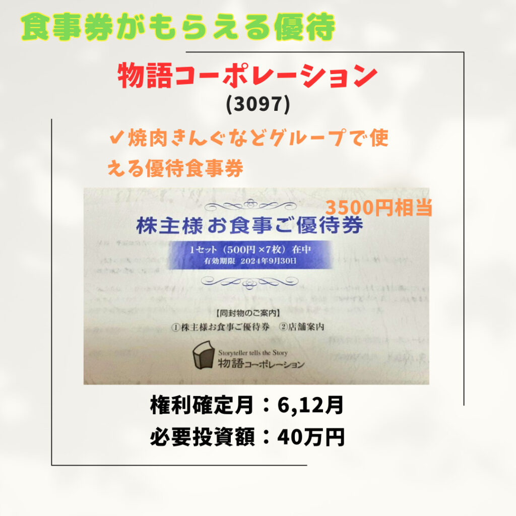飲食店で使える株主優待銘柄を紹介します。