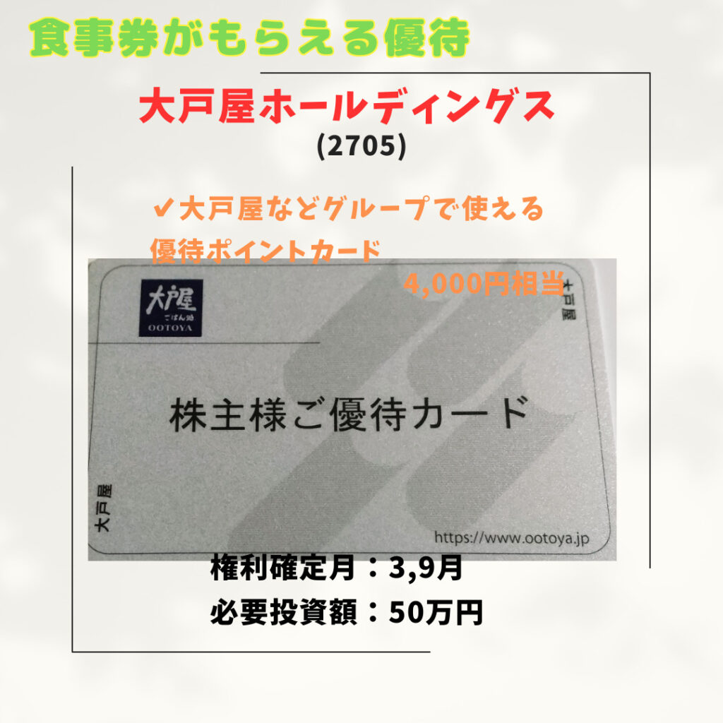 大戸屋などグループで使える優待ポイントカード 2000円相当
