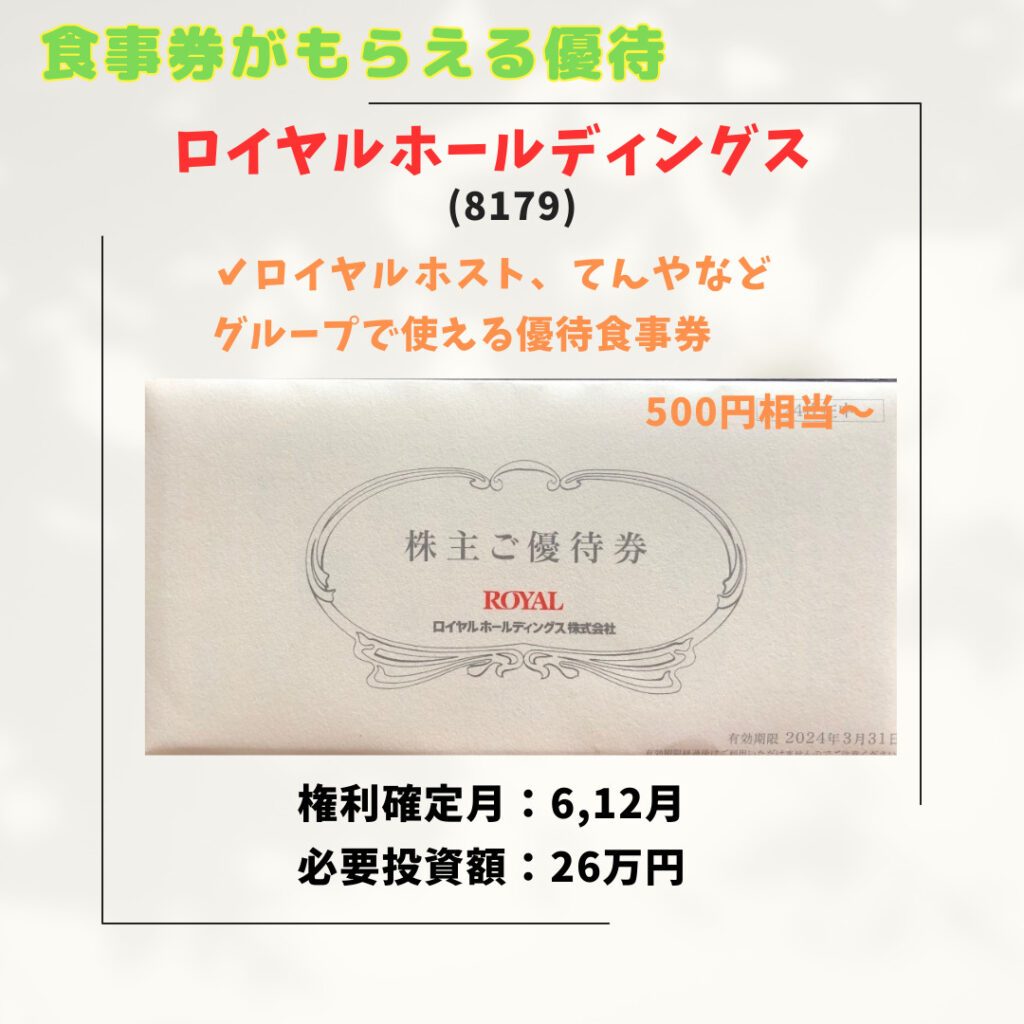 ロイヤルホスト、てんやなどグループで使える優待食事券 500円相当~