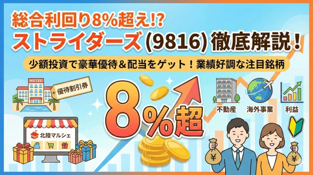 株式投資の醍醐味といえば、やっぱり「株主優待」と「配当金」ですよね。今回は、数万円という少額から投資できて、優待と配当のバランスが良い**ストライダーズ(9816)**をピックアップしました。