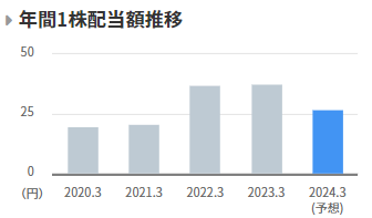 | おすすめ度 | ★★★☆☆ | 1株配当(予想) | 27円 |