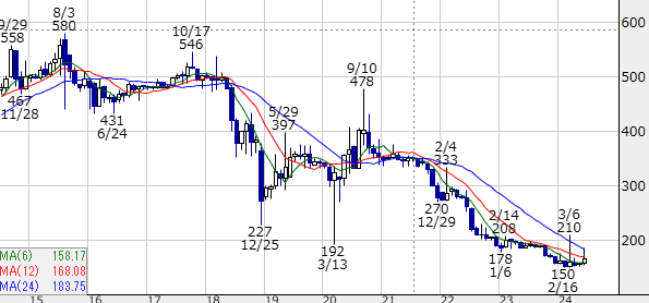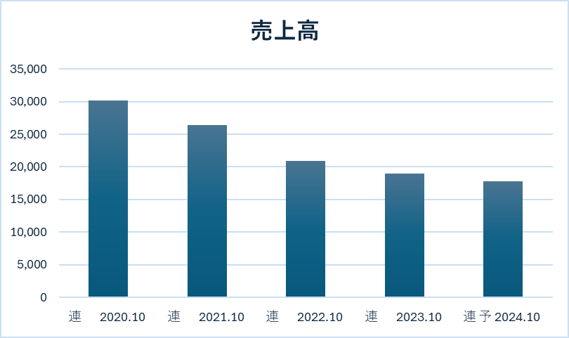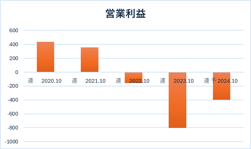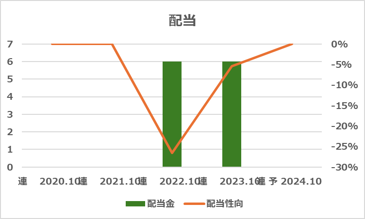売り上げが徐々に落ちてきており、赤字が継続。配当は無配へ転落