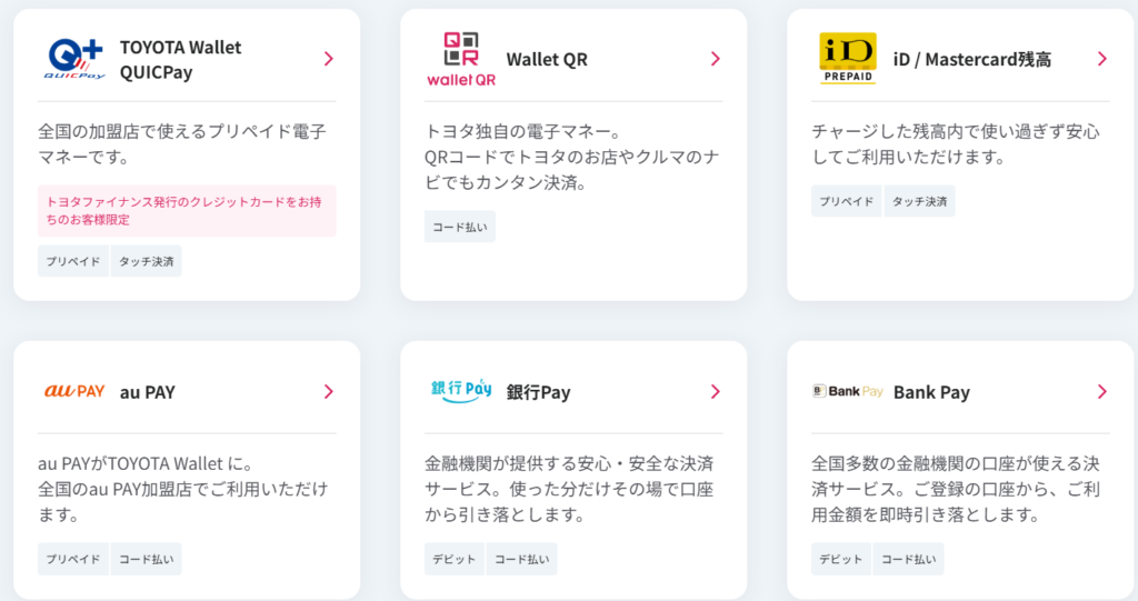 TOYOTA Walletが利用できるサービス